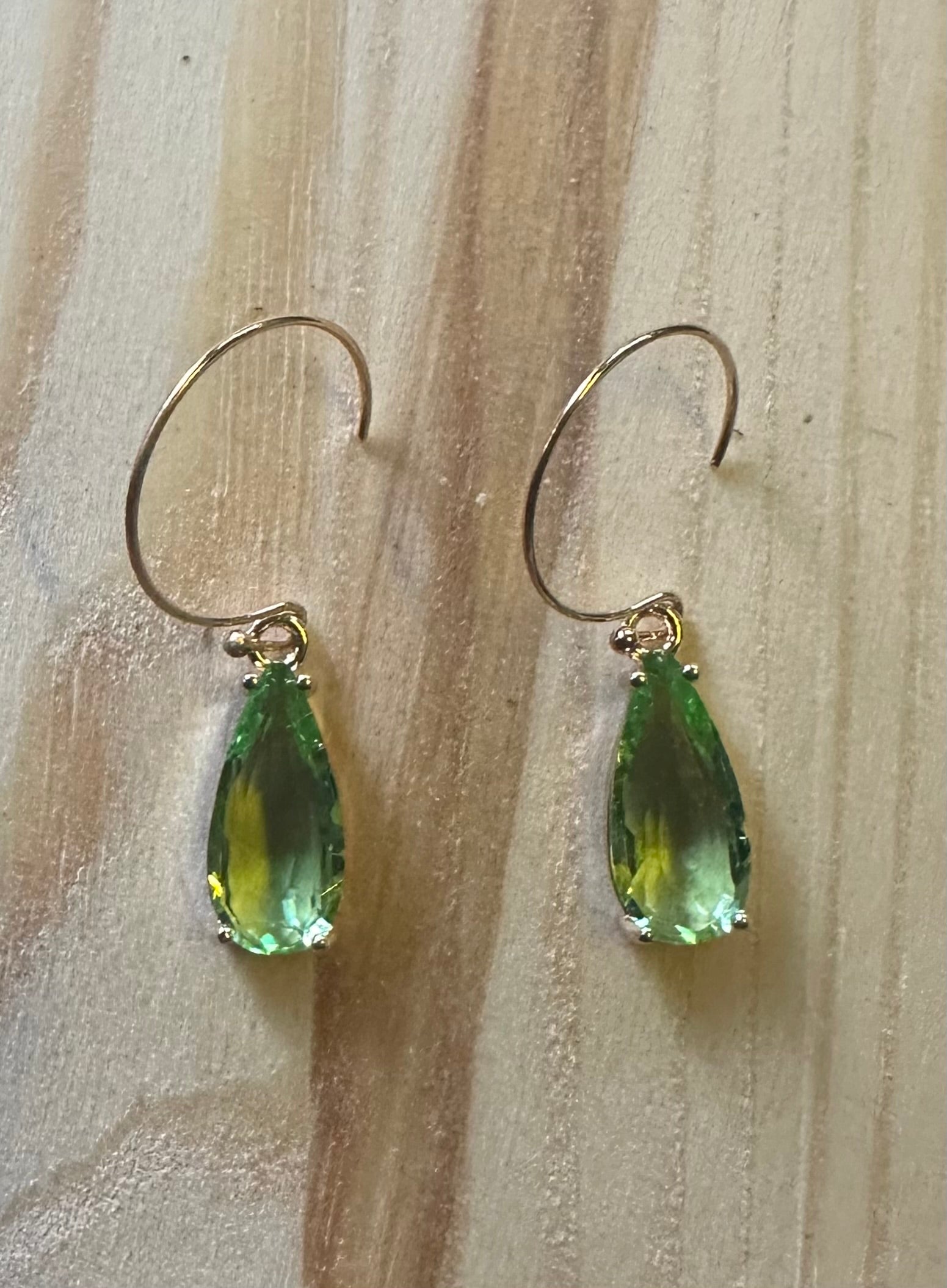 Beautiful faceted green glass teardrop earrings on gold plated, approx 2cm size droppers